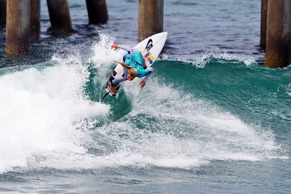 Lakey Peterson performing big-time at the U.S. Open of Surfing in Huntington Beach, CA. Photo by ASP; Rowland.